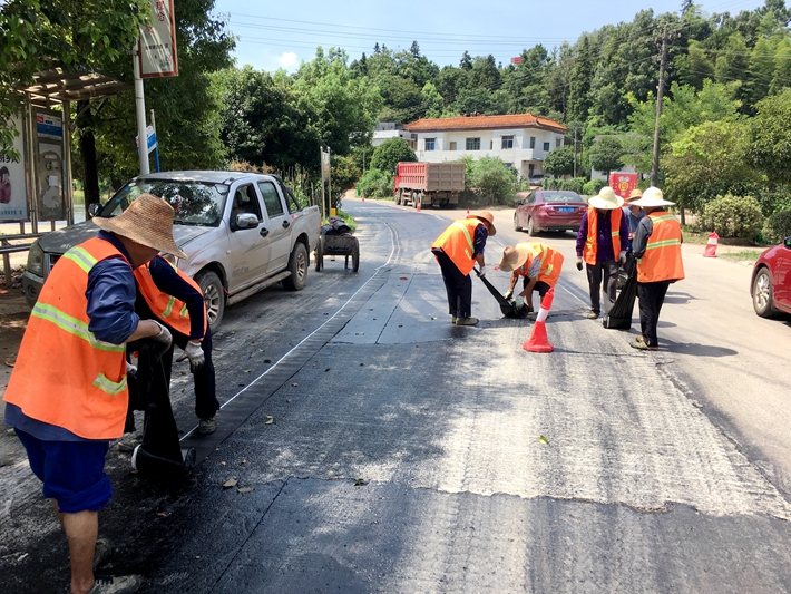 烈日當(dāng)空,驕陽似火。株洲市茶馬線(X002)荷塘段提質(zhì)改造工程項(xiàng)目進(jìn)行了為期五天的瀝青路面攤鋪施工任務(wù)。走進(jìn)施工現(xiàn)場是一片忙碌的景象,攤鋪機(jī)、安全員、巡視員、打磨工、清潔工各司其職,兢兢業(yè)業(yè),頂著烈日為瀝青攤鋪的順利進(jìn)行而緊張地忙碌著。