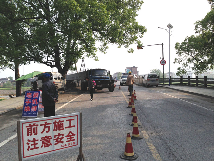 4月12日中午12時,位于炎陵縣S347項目新河西大橋建設現場,人字扒桿將一片長20米、重30.6噸的空心板梁從運梁車起吊,在參建人員的歡呼聲和鞭炮聲中,第一片空心板梁歷時5小時后平穩(wěn)、安全地安裝在支座上,成功架設。